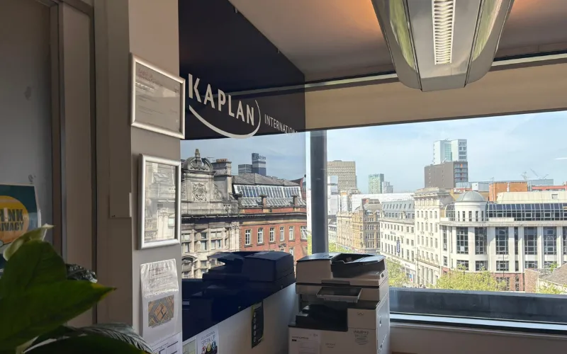 カプラン マンチェスターの校舎はビルの6階にあり、教室や学生ラウンジから眺めるマンチェスターの眺望は絶景です。
