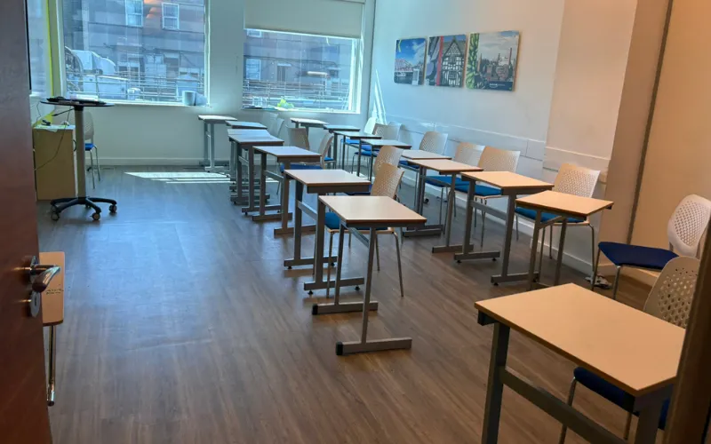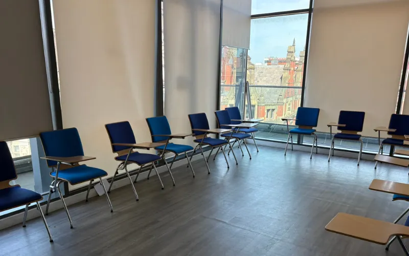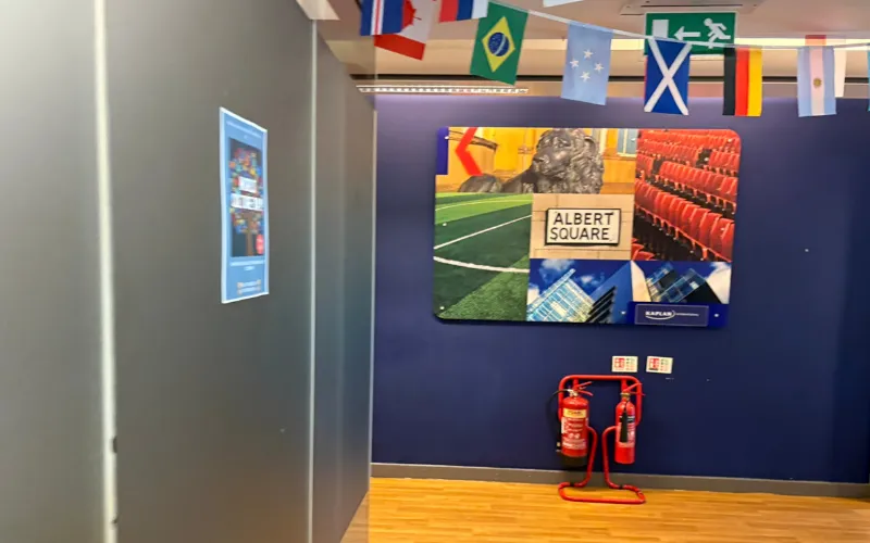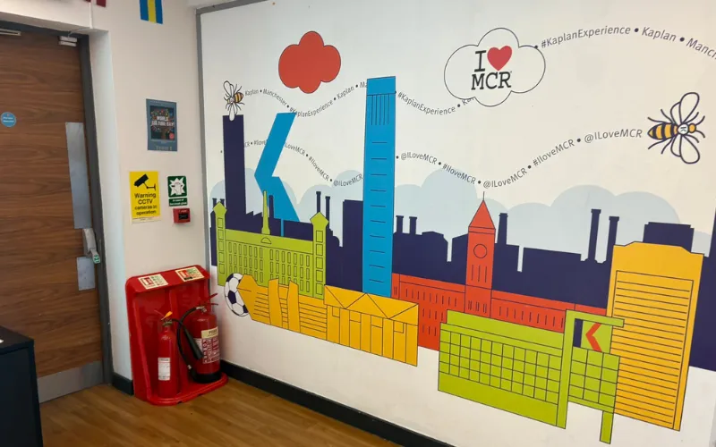 2025年5月にカプラン・マンチェスター校へ当社のスタッフが訪問して学校の様子を見てきました。マンチェスターの繁華街のど真ん中!校舎も綺麗で眺めも良く、マンチェスターを感じられる雰囲気です。