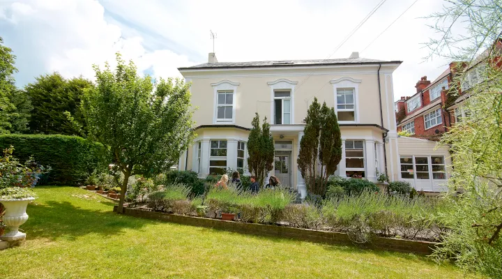 セントジャイルズ イーストボーンはイーストボーン中心部から徒歩5分~10分の住宅街に位置していて、周辺は木々と庭に囲まれリラックスできる環境にある学校です。