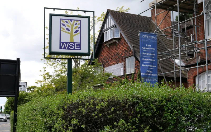 名前の通りロンドンの郊外ウィンブルドンに立地しており、ウィンブルドン駅から徒歩5分程度歩いた住宅街にあります。校舎も住宅のような外観の校舎なので、気をつけて見ていないと通り過ごしてしまうほどです。