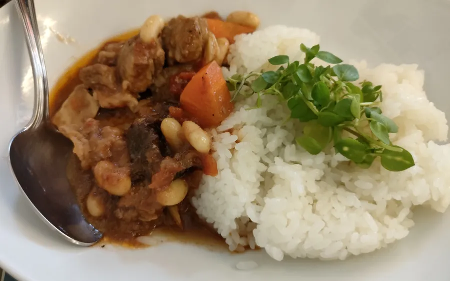 じっくり柔らかく煮込まれた羊肉とホクホクのじゃがいもが口の中でとろける肉と野菜を味わう一品。