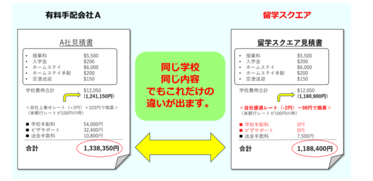 留学スクエアでは他社様とのお見積り診断も実施しており、他社さんより費用を抑えた留学計画をご提案できます。